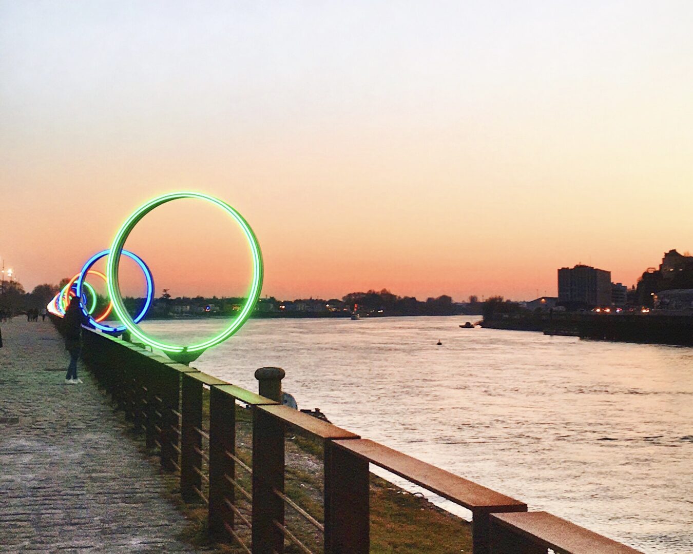 Enfin, dirigez-vous vers le Quai des Antilles pour contempler Les Anneaux de Buren : une oeuvre qui s’illumine à la tombée de la nuit. Vous pourrez également en profiter pour vous accorder une petite pause rafraîchissante dans l’un des nombreux bars situés au Hangar à Bananes.